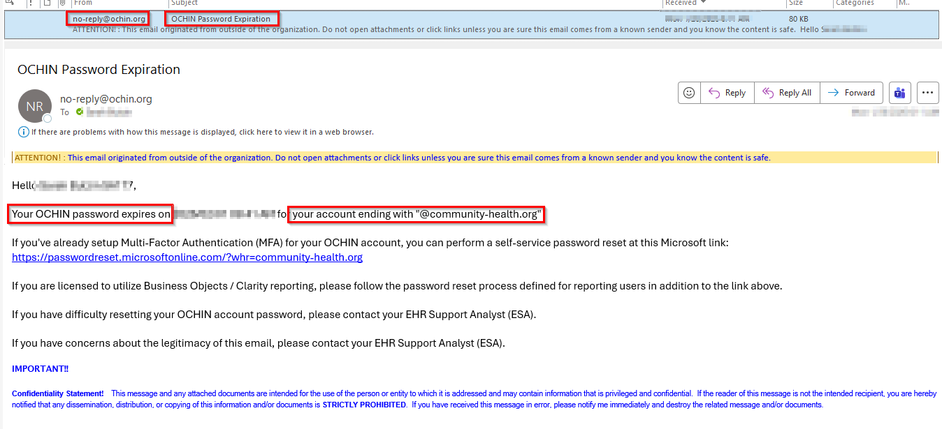 OCHIN will send Automatic emails that your OCHIN password is expiring.